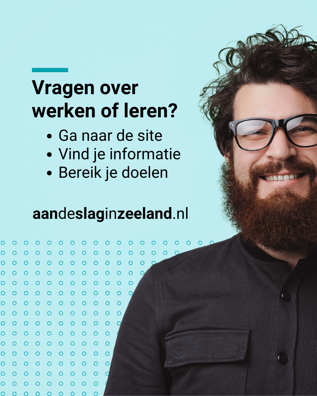 Deze website helpt iedereen in Zeeland bij vragen over werken en leren. Wil je werk of een opleiding vinden? Of ben je werkgever en zoek je personeel? Hier vind je de informatie die jij nodig hebt om aan de slag te gaan. Wil je meer weten over Aan de slag in Zeeland ga dan naar aandeslaginzeeland.nl